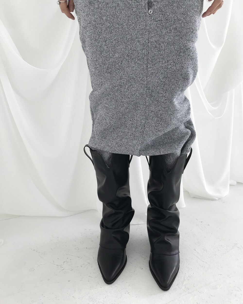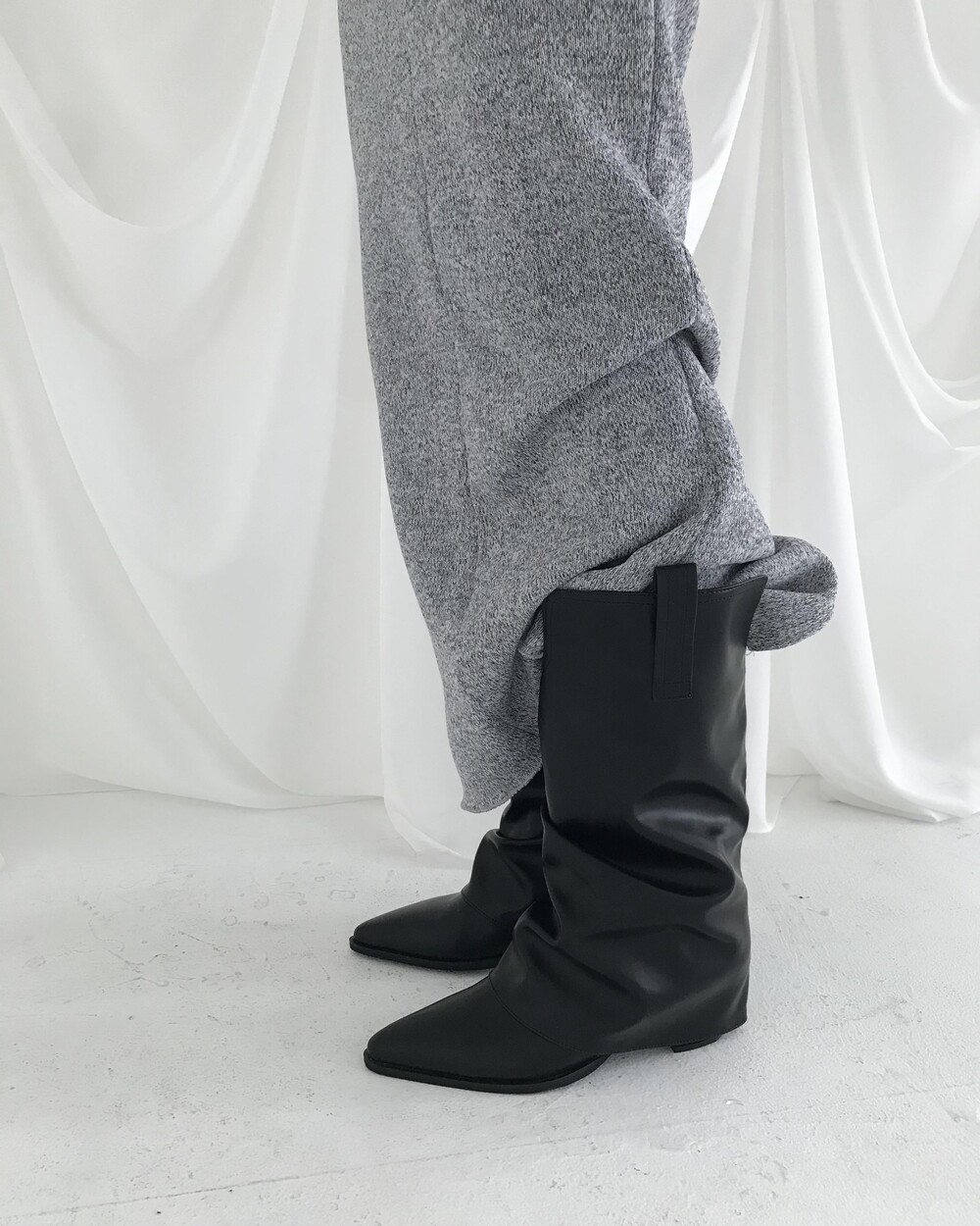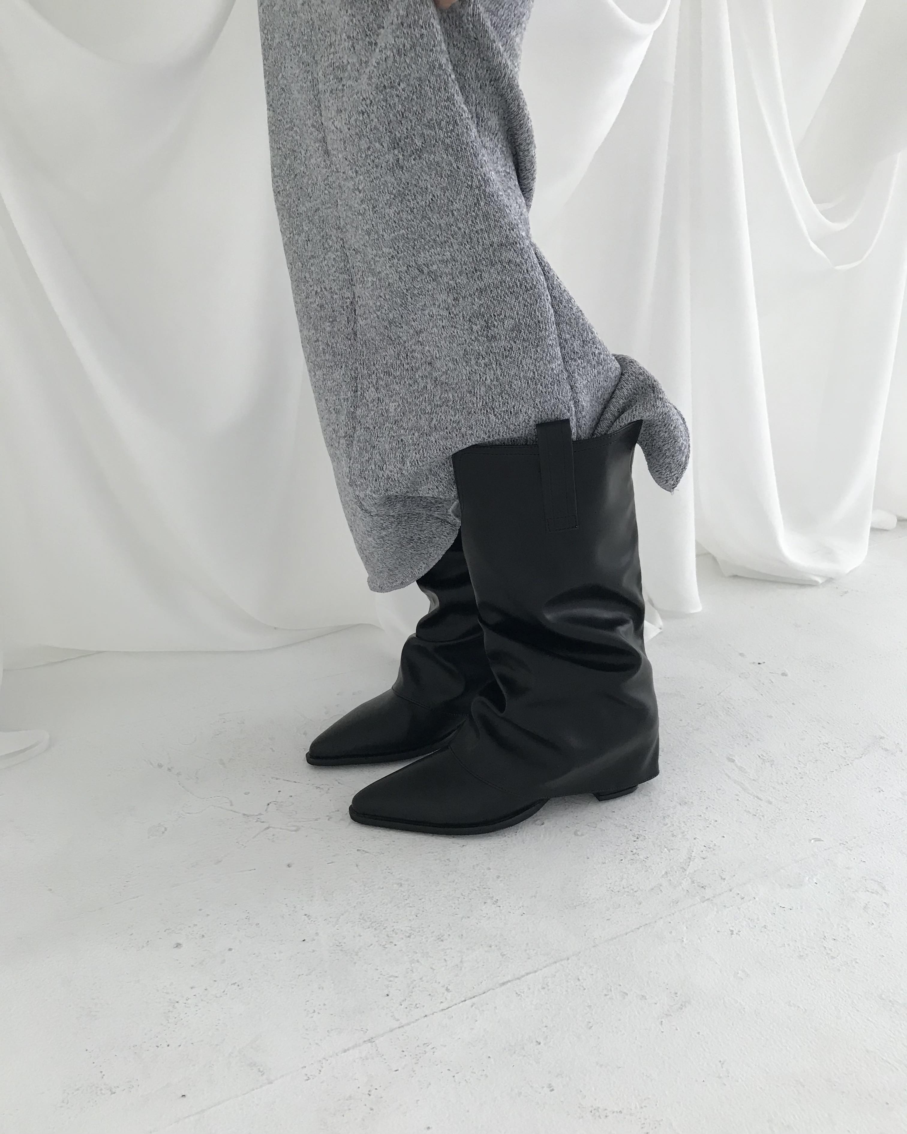 -셔링 주름이 자연스러운 웨스턴 미들 부츠