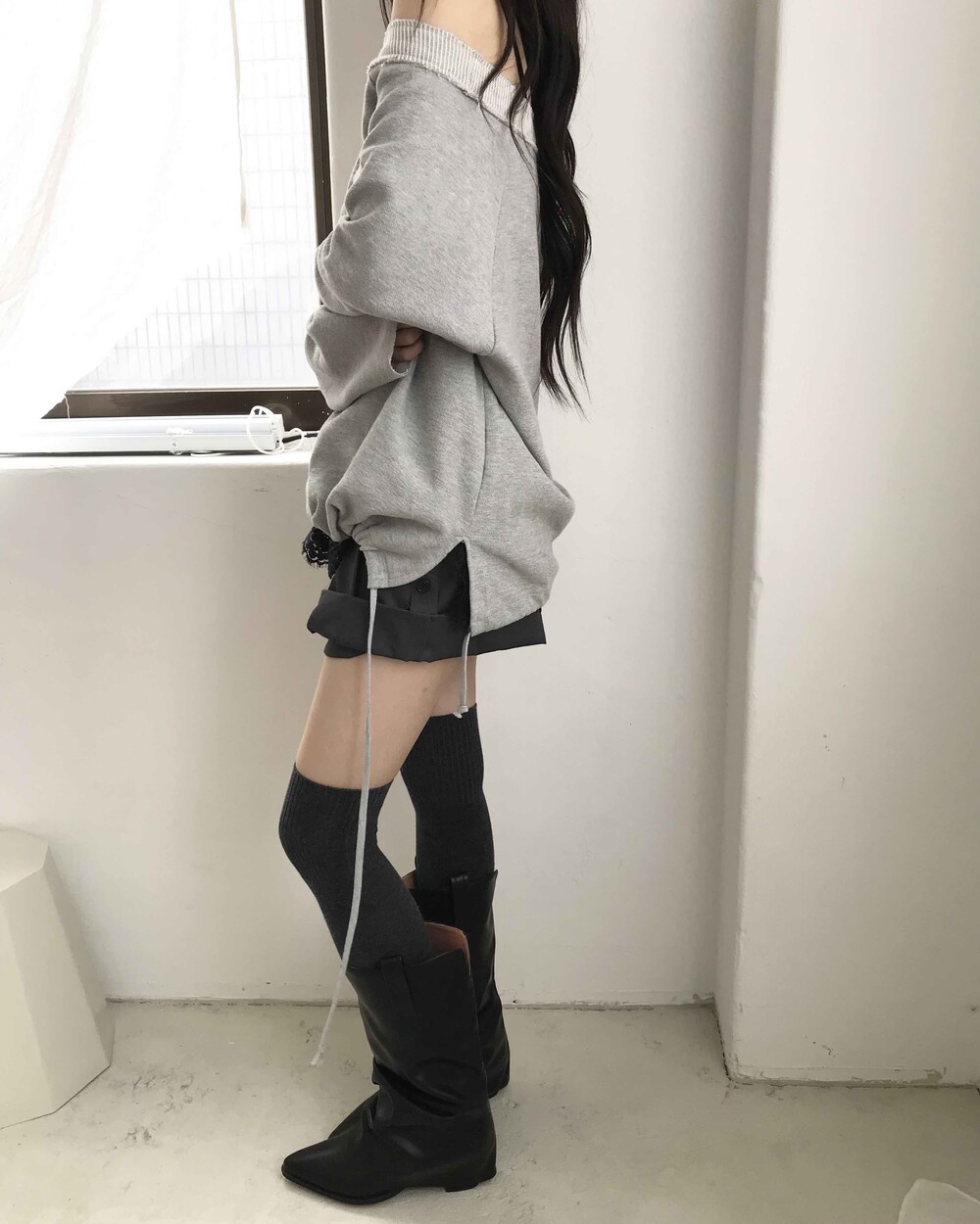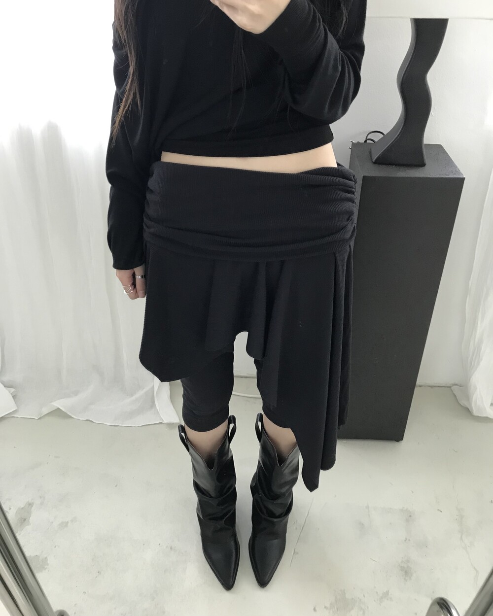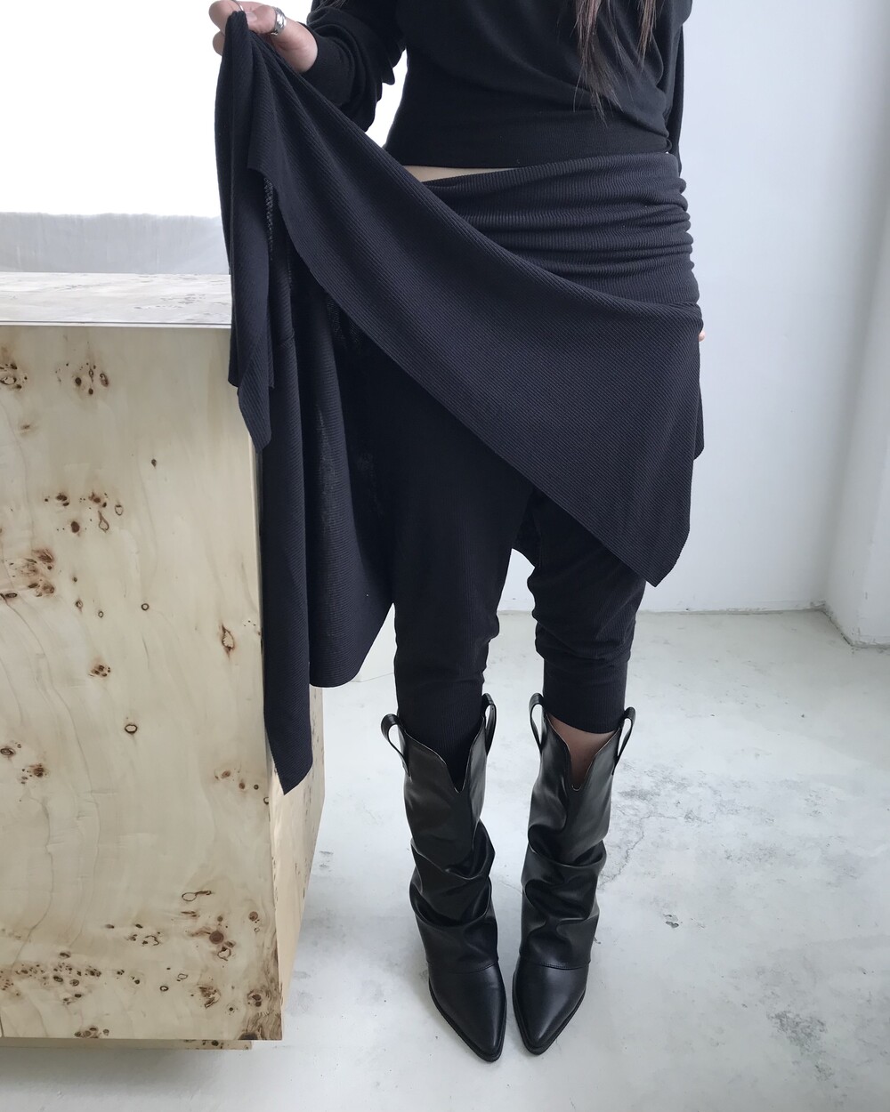 -셔링 주름이 자연스러운 웨스턴 미들 부츠